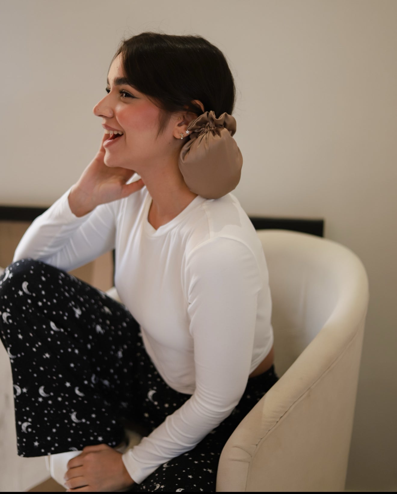 Our 'Zero Heat' Bun-Bons are made out of the finest Peau De Soie fabric to help you achieve frizz-free shiny blow out curls. Placements of the Bun-Bons entirely depends on your preference which makes it a perfect heatless styling option for side sleepers!